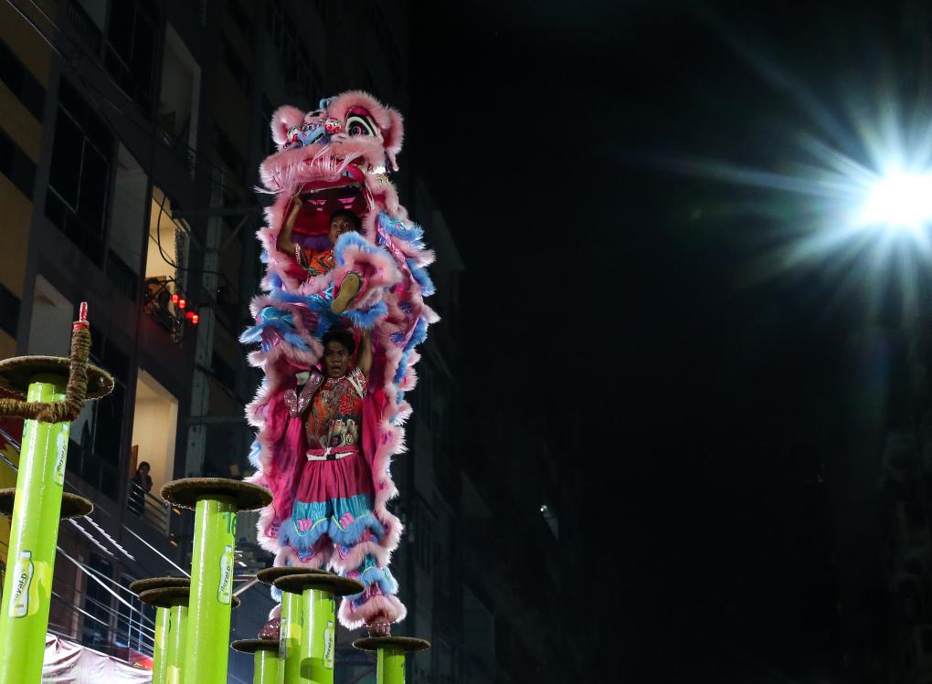 Competição de dança do leão e do dragão revive tradição no bairro chinês de Rangum após hiato de 5 anos