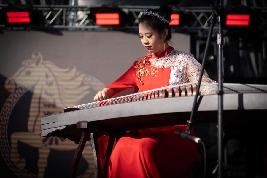 Mulher apresenta música tradicional chinesa durante uma comemoração do Ano Novo Chinês em La Plata, Buenos Aires, Argentina, em 21 de fevereiro de 2026. (Foto de Martin Zabala/Xinhua)