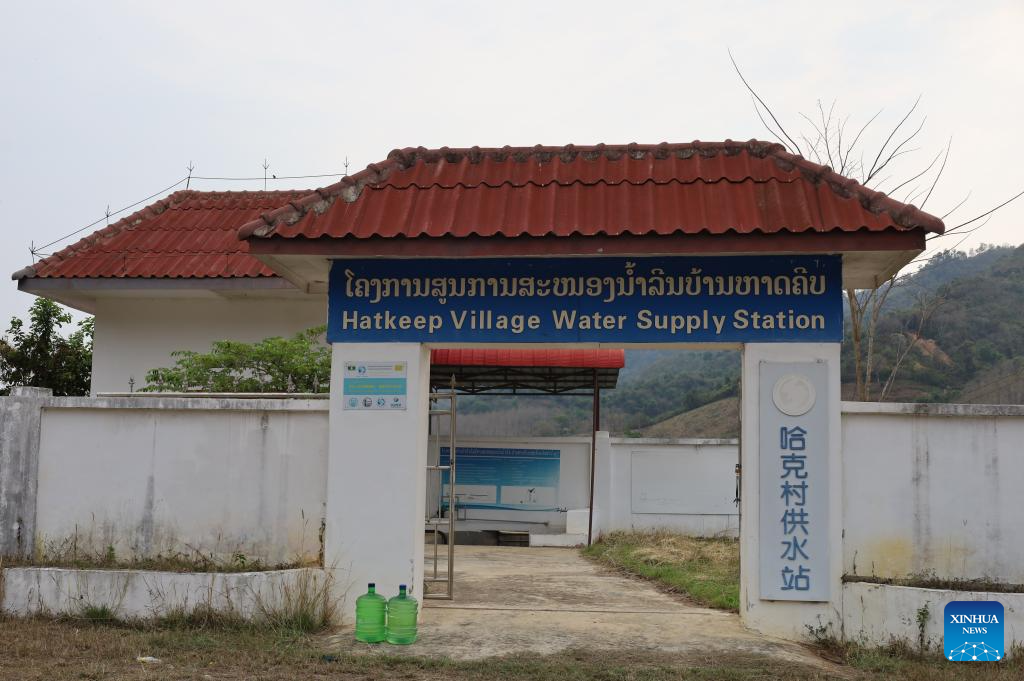 Foto tirada em 11 de março de 2026 mostra o posto de abastecimento de água na aldeia de Hatkeep, província de Luang Prabang, norte do Laos. (Xinhua/Ma Huaizhao)
