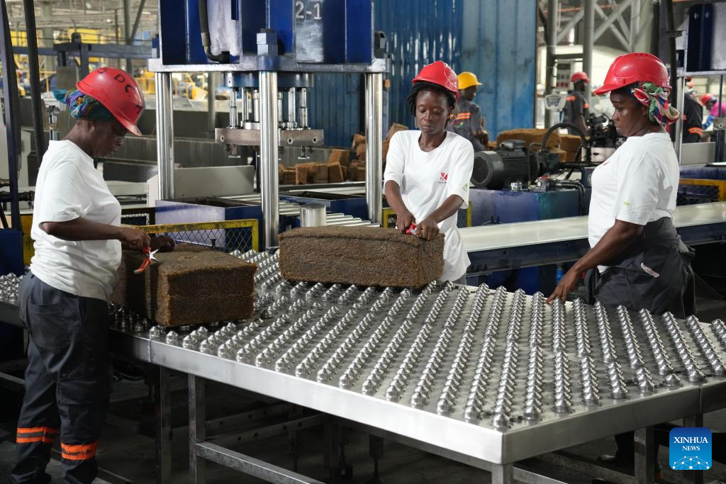 Na região de San Pedro, no sudoeste do país, as linhas de produção de uma fábrica de processamento de borracha do Grupo Mainland da China estão operando a plena capacidade. Com a implementação da política chegando, a empresa está aumentando a produção e formando estoques. Limpo, comprimido e seco, o látex é processado em produtos de borracha padronizados, embalados cuidadosamente e prontos para exportação para a China.