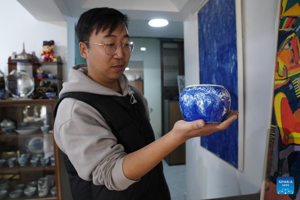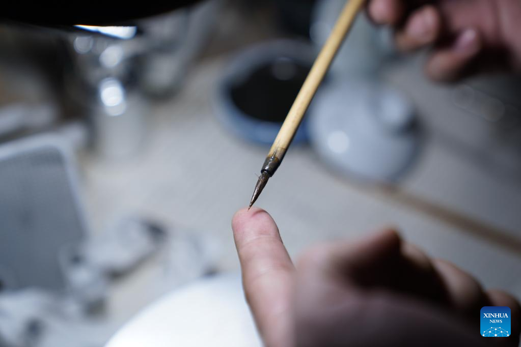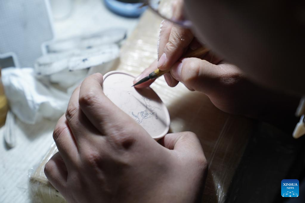 2. Jovem casal Cao Lang e Hu Yunyue persegue sonhos artísticos na pintura em porcelana em Jingdezhen, "capital da porcelana" da China