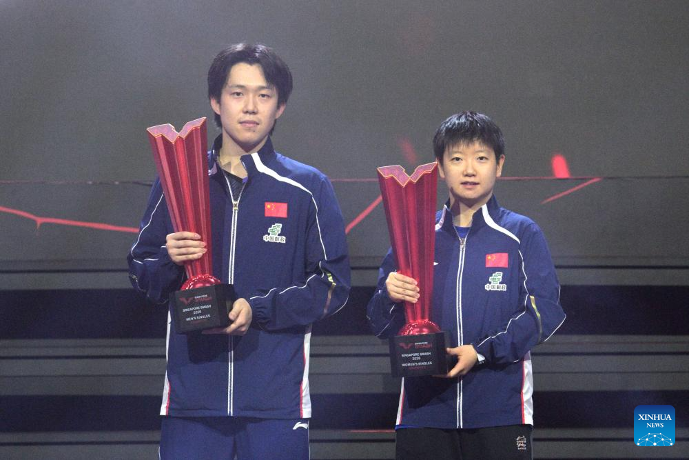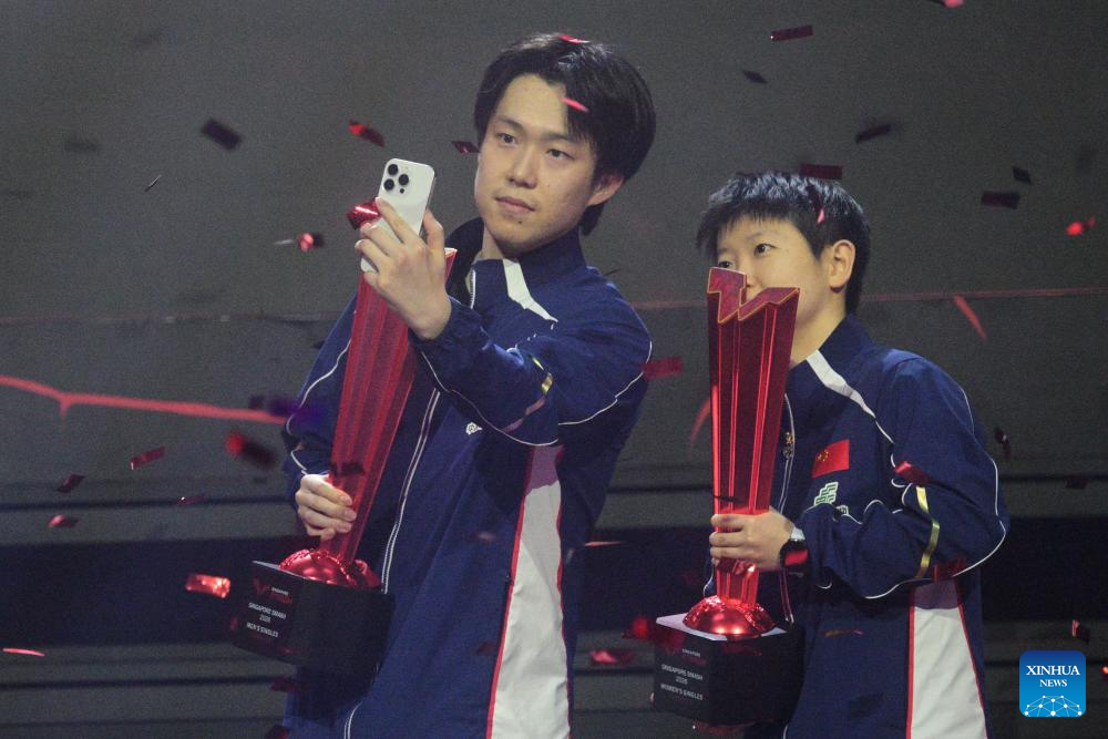 Voltar ao Brasil 247•Parceria entre Xinhua e Brasil 247Xinhua/Mesatenistas chineses Sun Yingsha e Wang Chuqin são campeões individuais do WTT Singapore SmashMesatenistas chineses Sun Yingsha e Wang Chuqin são campeões individuais do WTT Singapore Smash2 de março de 2026•1 min de leituraCompartilheFacebookTwitterLinkedInE-mailCopiar link