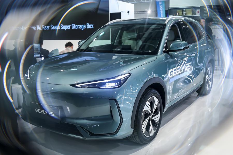 Foto tirada em 13 de março de 2026 mostra carro no estande da marca chinesa Geely no Salão Internacional do Automóvel e Tuning em Budapeste, Hungria. O Salão Internacional do Automóvel e Tuning começou na sexta-feira, com a participação de várias marcas chinesas. (Foto de David Balog/Xinhua)