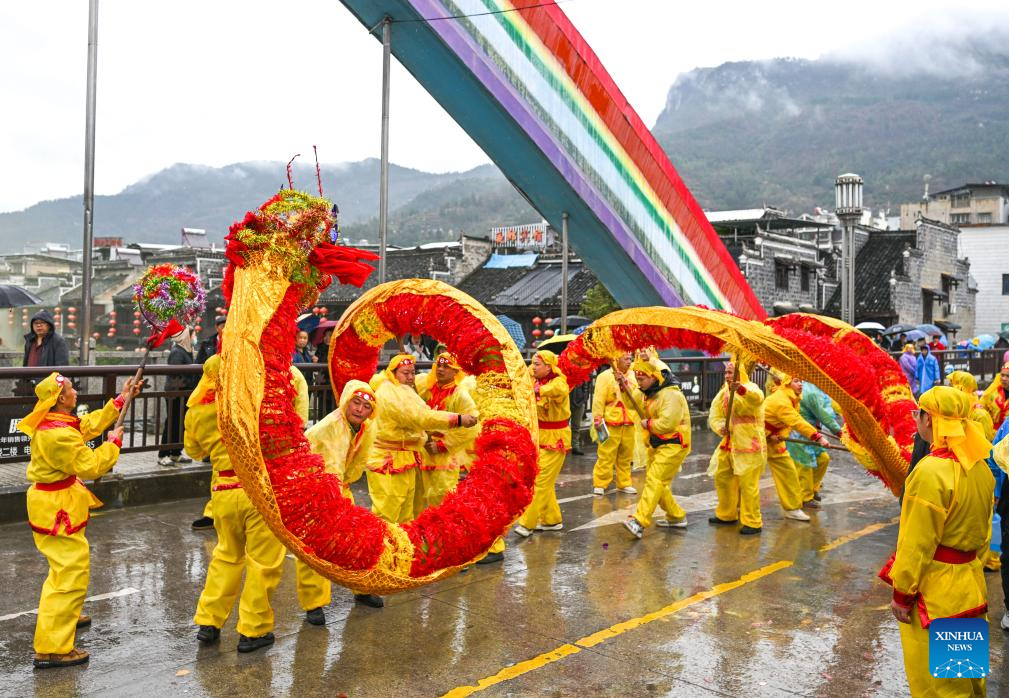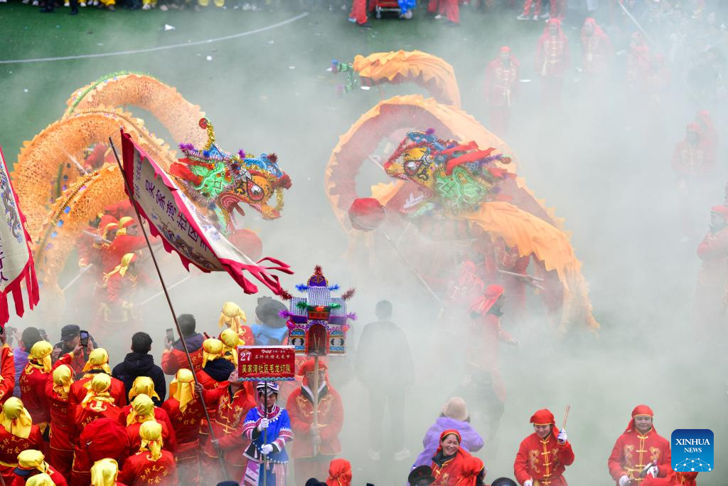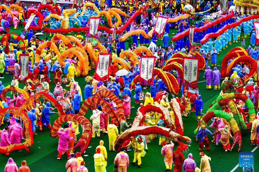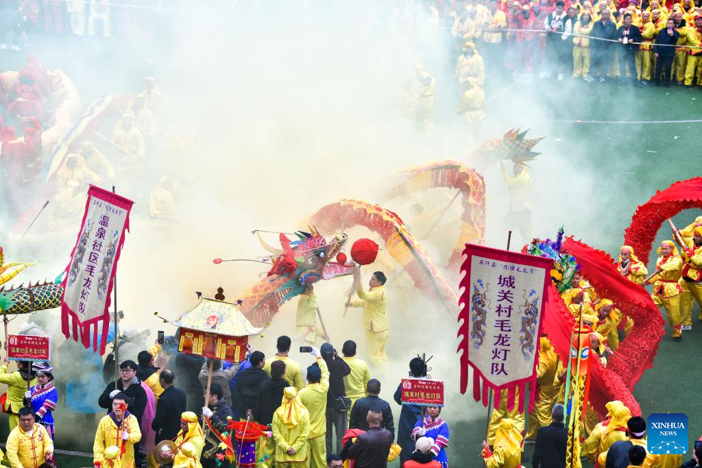 2. Moradores celebram "Festival Maolong" do grupo étnico Yilao com dança do dragão em Guizhou, no sudoeste da China