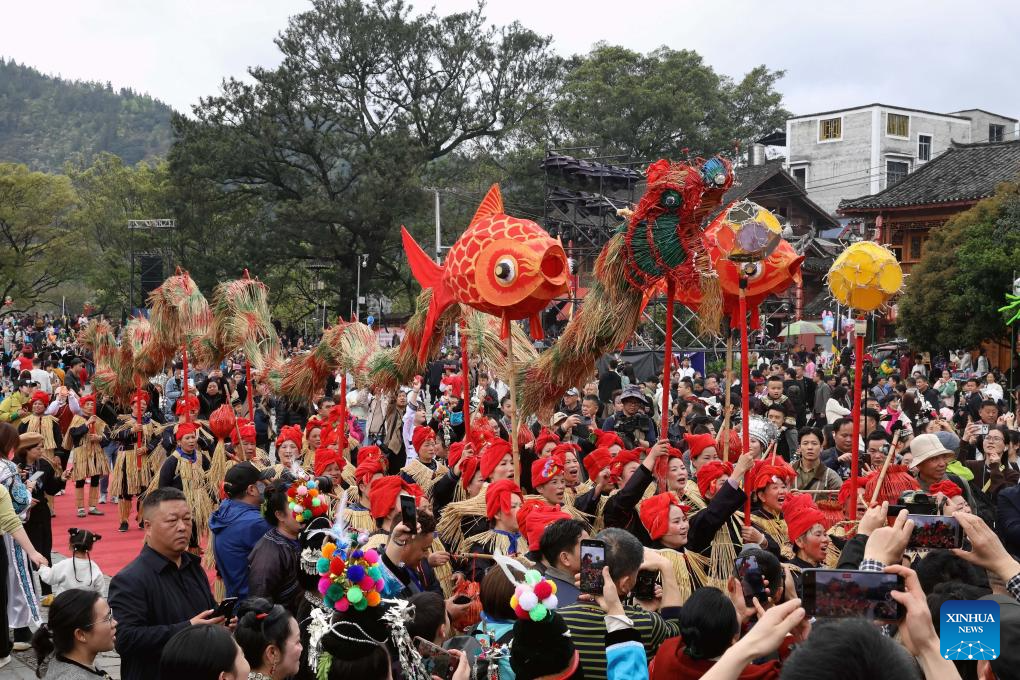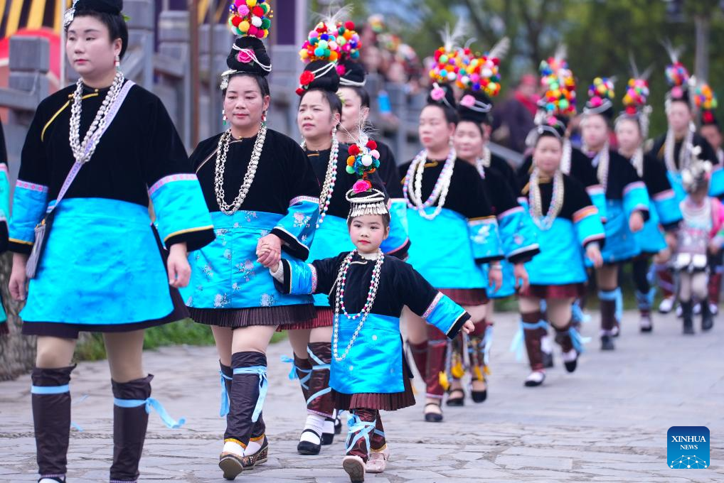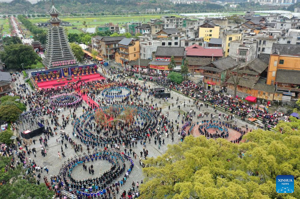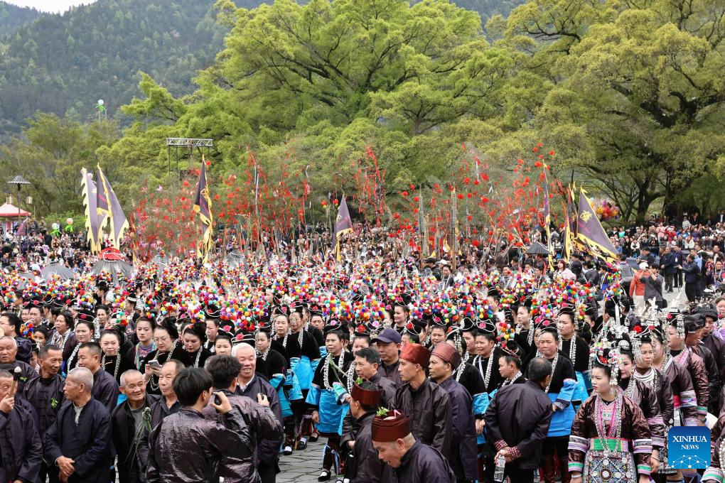 2. Moradores celebram Festival Sama na Aldeia da Etnia Dong de Sanbao em Guizhou, sudoeste da China