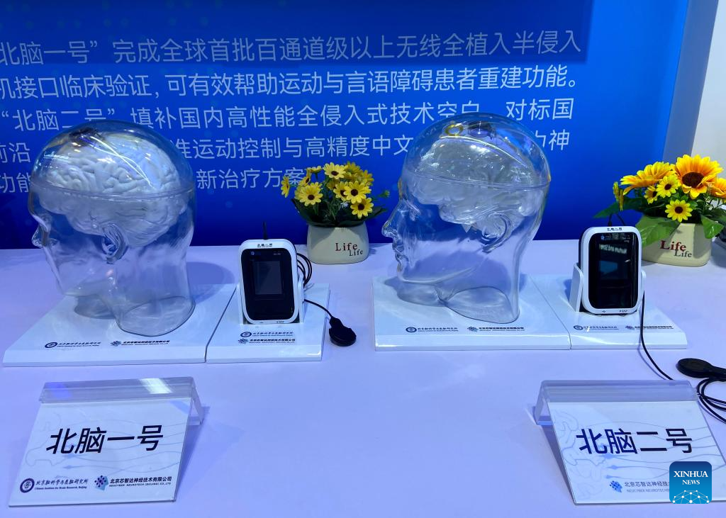 Entre os produtos da exposição, dois sistemas inteligentes desenvolvidos internamente, conhecidos como "Beinao-1" e "Beinao-2", atraíram atenção especial. Zhao observou que o "Beinao-1", um sistema semi-invasivo de BCI, foi implantado em sete pacientes. Todos se recuperaram bem e recuperaram as funções de movimento e fala. O "Beinao-2" entrará na verificação clínica este ano.