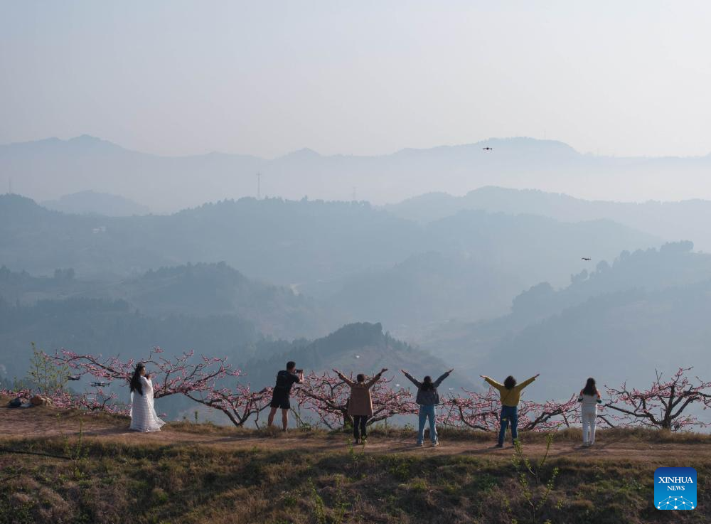 2. Pessegueiros floridos encantam visitantes em Chengdu, na Província de Sichuan