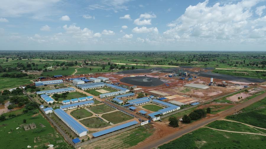 Foto aérea de drone tirada em 25 de agosto de 2023 mostra acampamento de construção do projeto da rodovia Mbour-Kaolack, no Senegal. (China Road and Bridge Corporation/Divulgação via Xinhua)