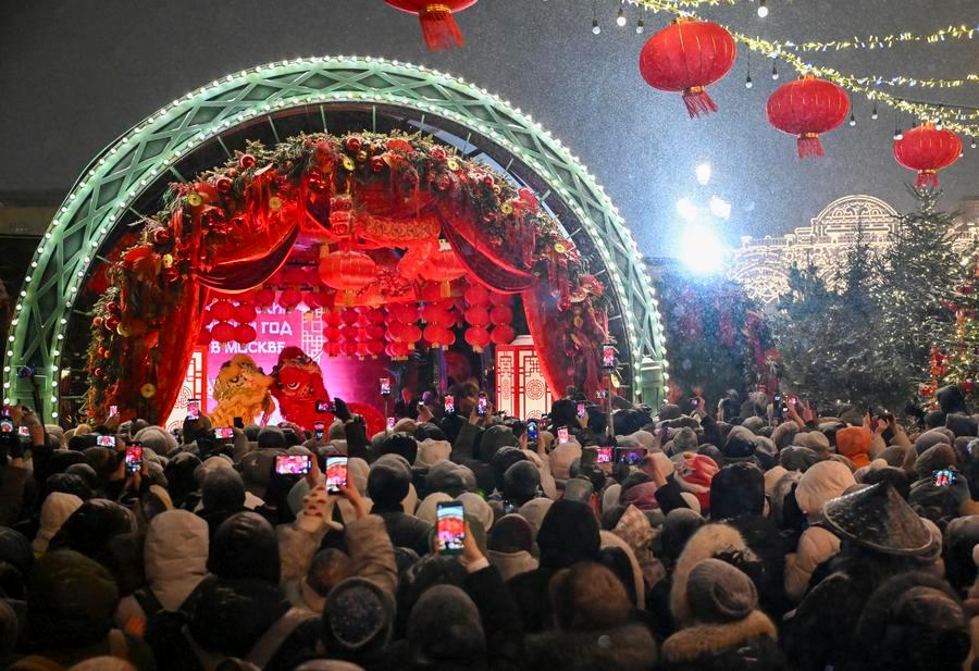 Na segunda-feira, véspera do Ano Novo Chinês, o terceiro evento "Feliz Ano Novo Chinês" foi inaugurado na Praça Manezhnaya, em Moscou. Apesar das temperaturas terem chegado a -15 graus Celsius e de ser um dia útil, moradores e turistas se reuniram no local, sob neve, para participar das comemorações.