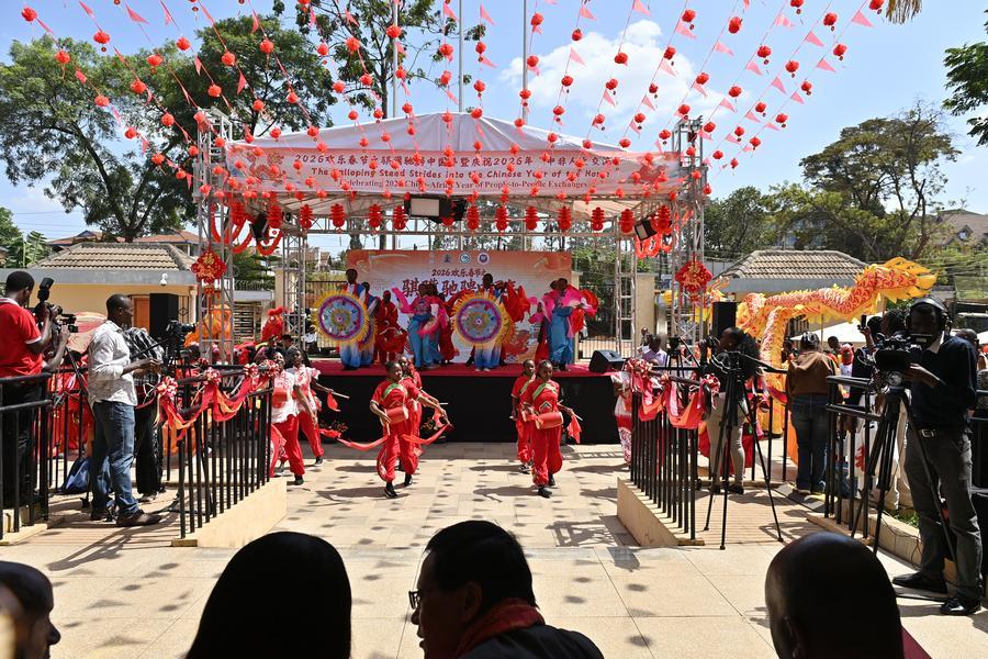 Pessoas participam de um evento do Ano Novo Chinês em Nairóbi, Quênia, em 12 de fevereiro de 2026. (Xinhua/Liu Qiong)